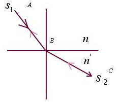 光源S1發(fā)射的光線經B點折射向C. 若在C點置一光線,光線亦可由C點出射經B點折射而射向A,即光線是可逆的。