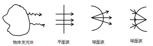 6、光波的分類:平面波、球面波(發(fā)散光波和匯聚光波)、任意曲面波