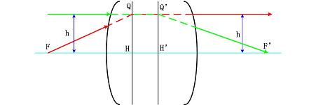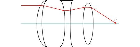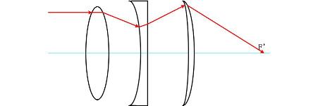 方法:在實(shí)際系統(tǒng)的近軸區(qū)追跡平行于光軸的光線,就可以計(jì)算出實(shí)際系統(tǒng)的近軸區(qū)的基點(diǎn)位置和焦距。