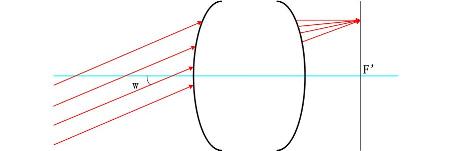 由于光學(xué)系統(tǒng)的口徑大小總是有限的,所以無限遠(yuǎn)的軸外物點(diǎn)發(fā)出的、能進(jìn)入光學(xué)系統(tǒng)的光線總是相互平行的,且與光軸有一定的夾角ω。