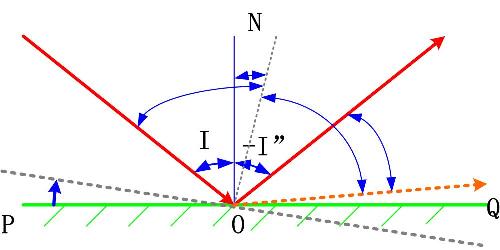 在雙平面鏡系統(tǒng)中,出射光線和入射光線的夾角與入射角無關(guān),只取決于雙面鏡的夾角α。