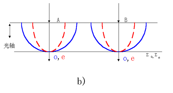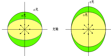 o光波面(球面)在e光波面(橢球面)之內(nèi)。