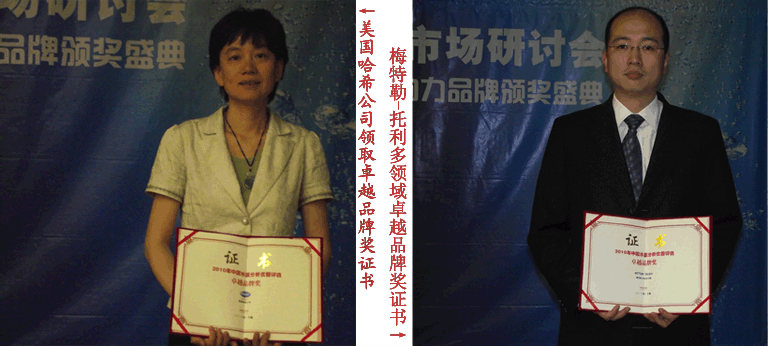 美國哈希公司領(lǐng)取卓越品牌獎證書與梅特勒-托利多領(lǐng)域卓越品牌獎證書