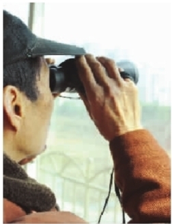 劉老漢為了弄清楚子彈從哪里發(fā)射出,特地花了兩百多元買了一副望遠(yuǎn)鏡,一有動(dòng)靜就戴上望遠(yuǎn)鏡觀察。
