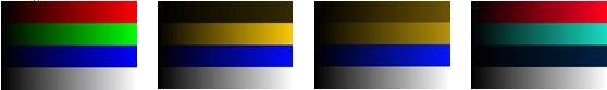色盲是嚴(yán)重異常色覺者,色盲可分為全色盲和局部色盲,其中,全色盲患者視網(wǎng)膜沒有椎體細(xì)胞,只有桿體細(xì)胞,因此只能感覺到黑白的灰階變化;局部色盲又稱為二色覺者,局部色盲又可分為紅——綠色盲、藍(lán)——黃色盲。紅——綠色盲不能區(qū)分紅色和綠色,又分為紅色盲和綠色盲,分別稱為甲型色盲、乙型色盲,藍(lán)——黃色盲稱為丙型色盲,不能區(qū)分藍(lán)和黃,僅對紅色、綠色產(chǎn)生色覺。正常色覺與三者色盲看到的紅、綠、藍(lán)和白的情況如下圖所示。