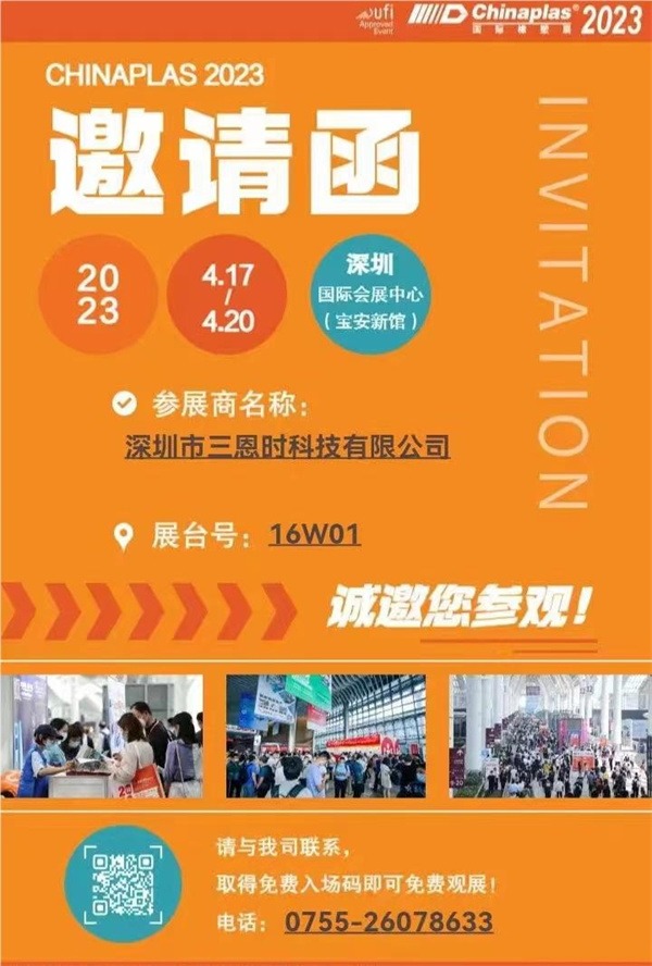 第三十五屆中國國際塑料橡膠工業(yè)展覽會(Chinaplas 2023 國際橡塑展)即將于4 月17-20日在中國深圳舉辦。三恩時可以提供顏色、光澤度、透光率等的檢測方案和設(shè)備,助力塑料橡膠行業(yè)的良性健康發(fā)展,誠摯地邀請您在展會期間蒞臨參觀我們的展臺。