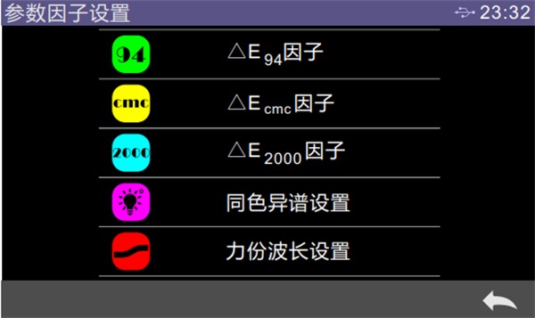 顏色指數(shù)界面可選擇當(dāng)前使用的色差公式、可選色度指標(biāo)、參數(shù)因子設(shè)置,以下結(jié)合實(shí)例進(jìn)行了介紹。
