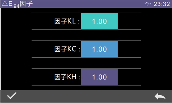 點(diǎn)擊因子KL、因子KC、因子KH的值,進(jìn)入編輯界面(如圖44所示),然后輸入新值,點(diǎn)擊“√”確認(rèn)保存參數(shù),點(diǎn)擊“”則取消保存設(shè)置。