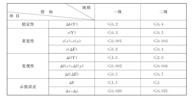 2. 重復(fù)性:s(Y)≤0.5;s(x),s(y)≤0.003;s(△E)|≤0.4