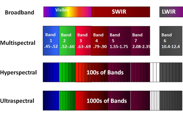 光譜范圍為可見光,近紅外,短波紅外,中波紅外,熱紅外,超光譜成像系統(tǒng)可提供成千上萬個(gè)非連續(xù)波段的圖像,主要應(yīng)用于復(fù)雜的圖像分析。