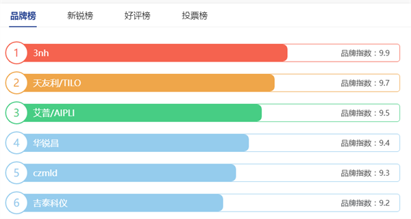 上榜理由:3nh三恩時是國內(nèi)專業(yè)的測色色差儀研發(fā)、生產(chǎn)廠家,旗下產(chǎn)品有TS系列分光測色儀、YS系列光柵式分光測色儀(便攜式/臺式)、NS系列分光色差儀、NH系列便攜式電腦色差儀和NR系列手提式色差。