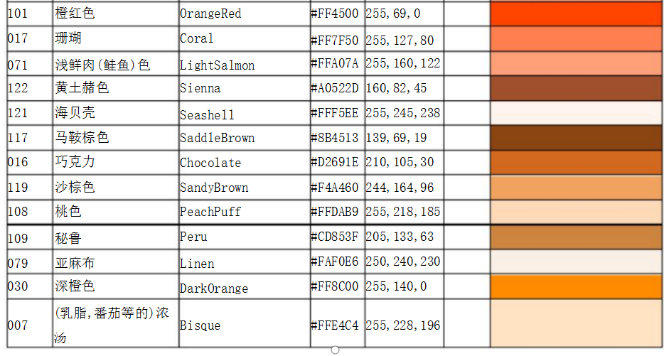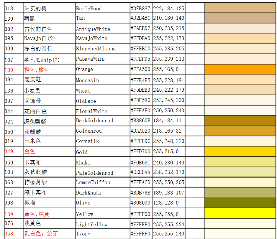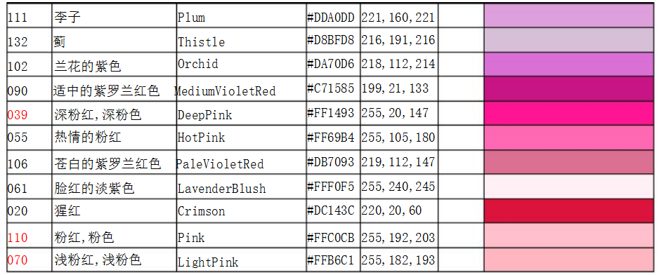 常用顏色國際色卡對照表