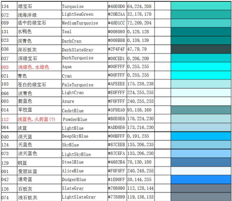 工業(yè)國際標準色卡對照表