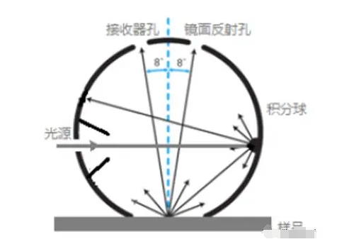 在色彩測量技術(shù)中,d/8o積分球是一種關(guān)鍵組件,其設(shè)計用于捕獲和均勻化來自樣品的光線。這種結(jié)構(gòu)允許光線以漫反射方式在球體內(nèi)壁多次反射,從而提供一個均勻的光照環(huán)境,確保測量結(jié)果的準確性和可靠性。d/8o的配置指的是照明光束與樣品法線的夾角為8度,而探測器則位于樣品的正常反射方向上,這種布局特別適用于需要模擬人眼觀察條件的色彩測量。