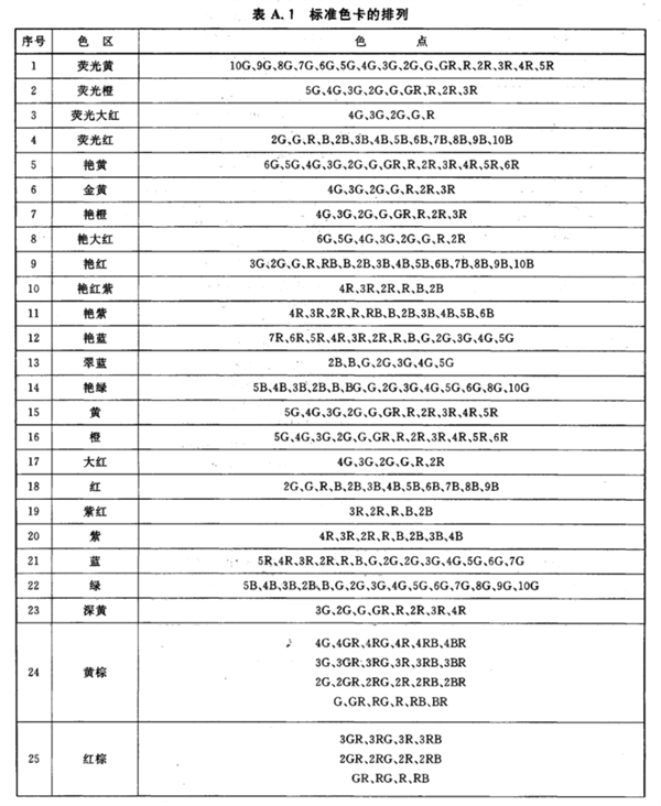 本標(biāo)準(zhǔn)的色卡分甲種本和乙種本兩種規(guī)格。