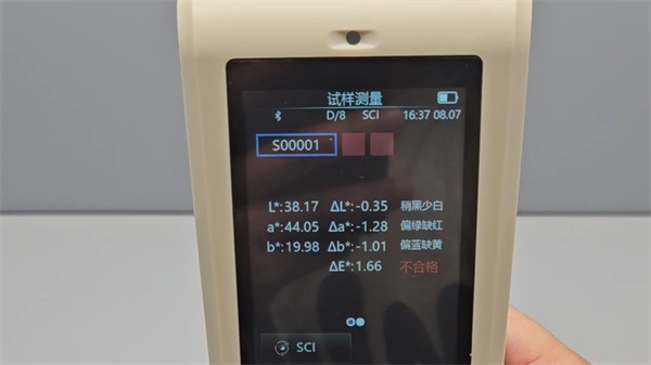 4. 讀取結(jié)果:測(cè)量完成后,CR8分光色差儀將在屏幕上顯示粉餅樣品的色度坐標(biāo)(如L*、a*、b*值)和色差值(如ΔE)。這些數(shù)值反映了粉餅顏色的亮度、紅綠偏差和黃藍(lán)偏差以及與標(biāo)準(zhǔn)色的差異程度。