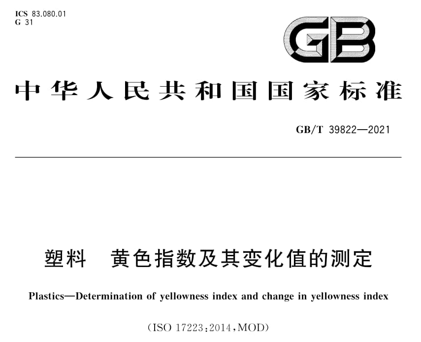 1. GB/T 39822-2021塑料黃色指數(shù)及其變化值的測(cè)定