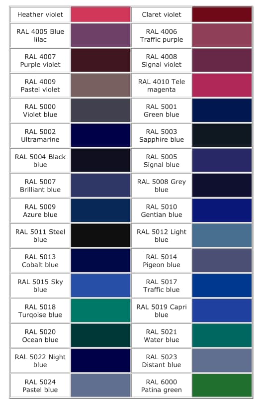 這些顏色編號(hào)和名稱僅作為示例,實(shí)際勞爾RAL國際色卡中包含了更多的顏色。