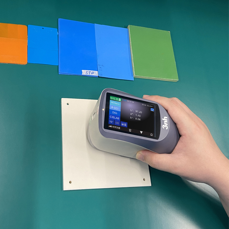 樣品狀態(tài)同樣不可小覷。表面平整度至關(guān)重要,若樣品表面有劃痕、凹凸不平、污漬,光線反射就會(huì) “亂了陣腳”,測(cè)量結(jié)果與實(shí)際偏差甚遠(yuǎn)。以汽車噴漆工藝為例,漆面哪怕微小瑕疵,色差儀都能敏銳捕捉,影響整車外觀質(zhì)量評(píng)判。樣品厚度與透明度也有講究,厚度不均,光線穿透、散射不同,顏色感知有差異;透明或半透明樣品,光線折射、反射復(fù)雜,測(cè)量時(shí)要考慮背景色、光源角度影響,稍有不慎,數(shù)據(jù)就會(huì) “差之毫厘,謬以千里”。 掌握這些要點(diǎn),了解色差儀數(shù)據(jù)受環(huán)境、校準(zhǔn)、樣品狀態(tài)等因素的影響,在使用時(shí)盡量排除干擾,才能讓色差儀發(fā)揮最大功效,為色彩管理提供精準(zhǔn)可靠的數(shù)據(jù)支持,助力各行業(yè)打造出色彩完美統(tǒng)一的優(yōu)質(zhì)產(chǎn)品。