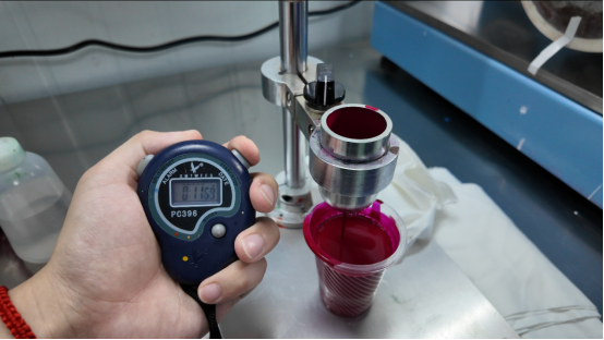 ??粘度調(diào)整??:使用蔡恩杯測量舊墨實際粘度,調(diào)整至與車間生產(chǎn)粘度一致,確保舊墨與新墨兼容性。