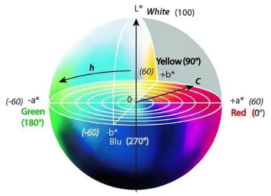 CIELab:采用直角坐標(biāo)系,由明度(L*)、紅/綠軸(a*)和黃/藍(lán)軸(b*)三個(gè)坐標(biāo)表示顏色。
