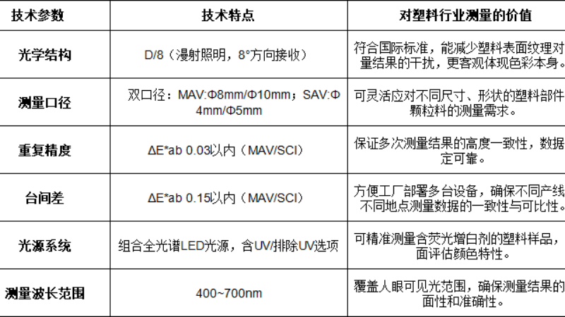 儀器校準:測量前需進行黑白板校準。樣品制備:待測塑料樣品表面應(yīng)清潔、平整、無劃痕。對于微小或不規(guī)則樣品,可選用合適的測量口徑(如Φ4mm)。測量環(huán)境:盡量避免在強光直射或環(huán)境光頻繁變化的環(huán)境下測量,以確保測量穩(wěn)定性。測量方法:對于均勻材質(zhì),建議多次測量取平均值;對于可能存在色差的產(chǎn)品,應(yīng)在不同部位進行測量比對。
