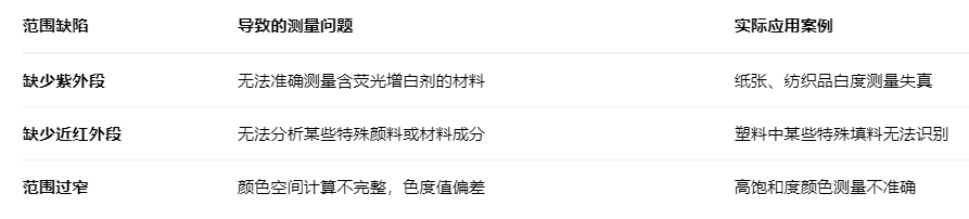 當儀器的波長范圍未能完全覆蓋樣品的關鍵光譜特征時,會出現(xiàn)測量偏差: