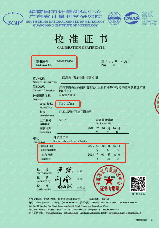 品質(zhì)保障:三恩時YD5010校準(zhǔn)證書