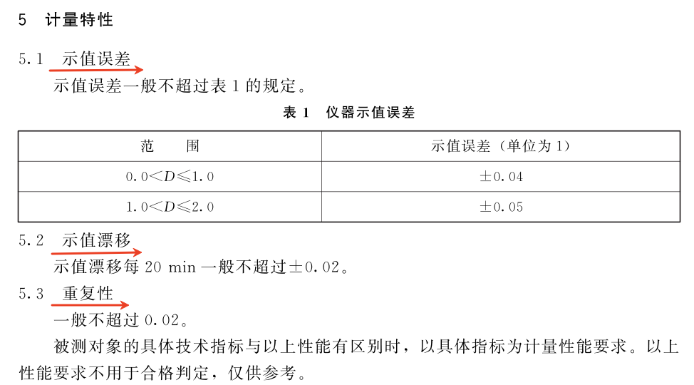 《JJF1492-2014 反射式光密度計校準(zhǔn)規(guī)范》是密度儀校準(zhǔn)的核心技術(shù)規(guī)范。它明確了校準(zhǔn)方法、設(shè)備要求和結(jié)果判定標(biāo)準(zhǔn),確保每臺密度儀的測量數(shù)據(jù)可溯源性。計量特性要求如下: