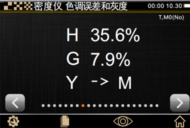測量結果會與顏色偏差方向一起顯示,例如Y->M表示色彩為黃色偏向品紅色,為用戶提供直觀的顏色偏離信息。