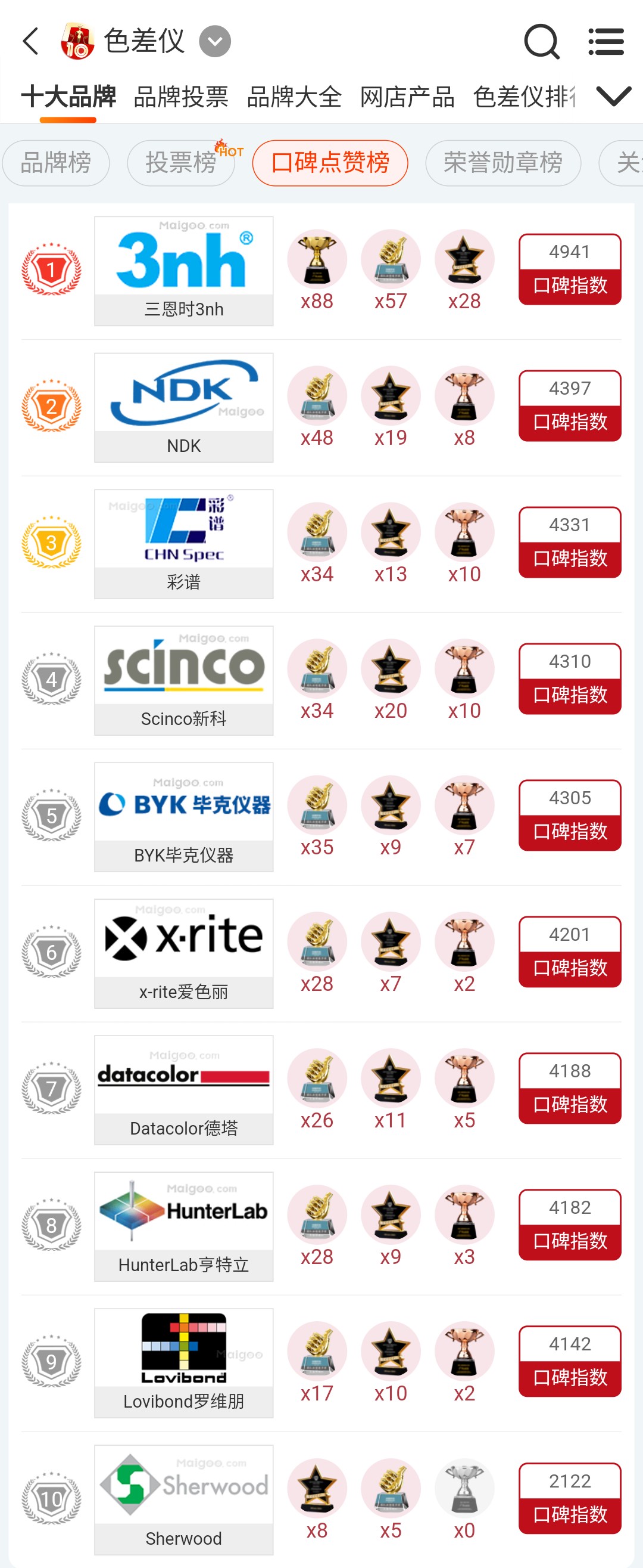 2026年度色差儀十大品牌排行榜正式發(fā)布,x-rite愛色麗、HunterLab亨特立、Datacolor德塔、三恩時3nh、彩譜等十大品牌憑借其技術(shù)實力與市場表現(xiàn)成功入選。恭喜三恩時在口碑點贊榜榮獲榜首。