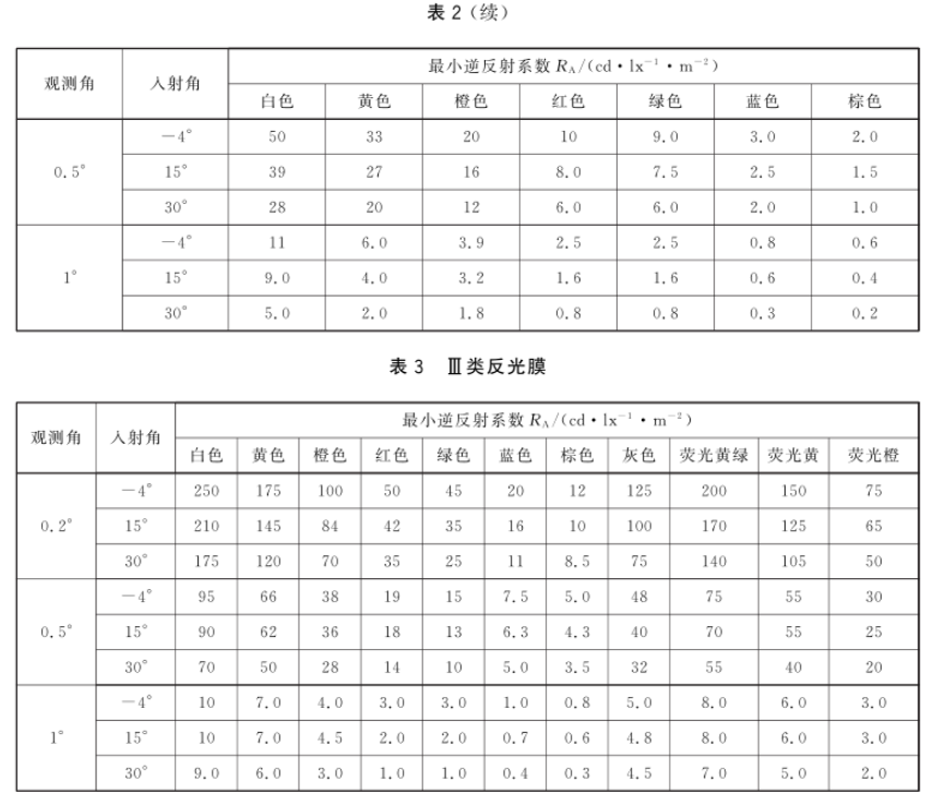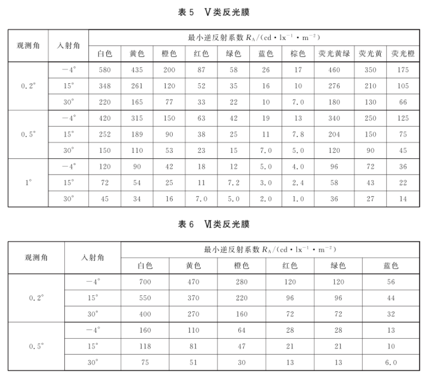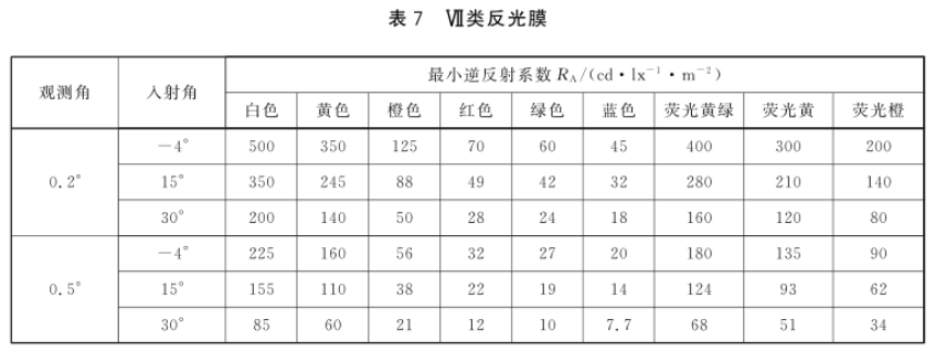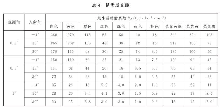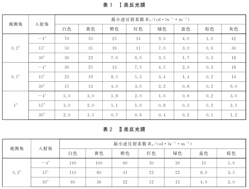 根據(jù) GB 2893-2008 等相關(guān)規(guī)范,反光膜被劃分為 7 類,每一類都對(duì)應(yīng)明確的使用壽命和應(yīng)用場(chǎng)景。反光膜的光度性能以逆反射系數(shù)表述,各類反光膜(包括絲網(wǎng)印刷和貼覆電刻膜后的反光膜,以下同),其逆反射系數(shù)R、值不應(yīng)低于表1~表7給出的相應(yīng)類別的規(guī)定。5.3.2反光膜如不具備旋轉(zhuǎn)均勻性,即在不同旋轉(zhuǎn)角條件下的光度性能存在差異時(shí),制造商應(yīng)沿其逆反射系數(shù)值較大方向做出基準(zhǔn)標(biāo)記。