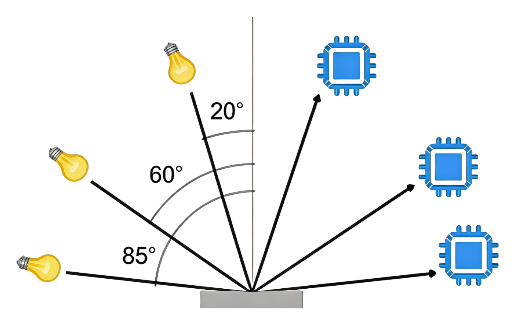 三個(gè)角度分工明確,精準(zhǔn)適配不同光澤的樣品,確保數(shù)據(jù)科學(xué)、可比: