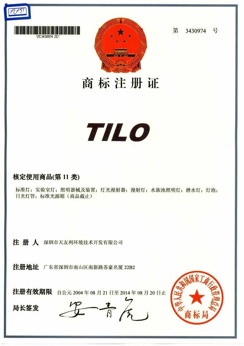 深圳市天友利標準光源有限公司、深圳市天利泰路科技有限公司(生產(chǎn)廠家)成立于1998年12月30日,先后注冊了商標:TILO、TAYOLE和天友利等,并在香港也成立了公司:卡羅卡超香港有限公司。