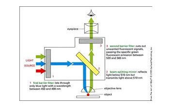 熒光鏡檢術(shù)是用短波長的光線照射用熒光素染色過的被檢物體,使之受激發(fā)后而產(chǎn)生長波長的熒光,然后觀察。