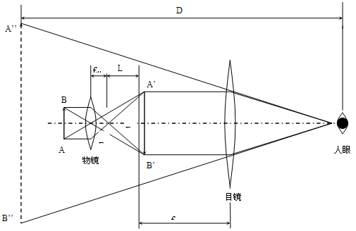 由上式知,透鏡的焦距越短,放大 鏡的放大倍數(shù)越大。一般采用的放大 鏡焦距在10~100mm范圍內,因而放大倍數(shù)在2.5~25倍之間。進一步提高放大倍數(shù),將會由于透鏡焦距縮短和表面曲率過分增大而使形成的映象變得模糊不清。為了得到更高的放大倍數(shù),就要采用顯微鏡,顯微鏡可以使放大倍數(shù)達到1500~2000倍。