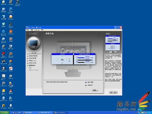 首先安裝軟件。按照使用說明,在顯示器開機(jī)30分鐘之后,插入Eye-One Display LT校準(zhǔn)工具并懸垂在屏幕正中。運(yùn)行軟件,按照提示一步一步選擇對(duì)應(yīng)的選項(xiàng),然后檢測(cè)工具開始工作,屏幕不斷變換各種顏色,經(jīng)過幾分鐘之后,軟件提示校準(zhǔn)完成,生成的色彩配置文件已經(jīng)導(dǎo)入系統(tǒng)配置并生效。