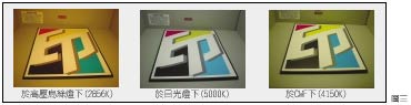 我們于生產(chǎn)時(shí)一般測(cè)量色溫的變化已足夠,因?yàn)檎彰黧w的穩(wěn)定性會(huì)隨著時(shí)間、環(huán)境而改變。雖然市面上有色溫表(于專業(yè)攝影器材公司可購(gòu)買),但價(jià)錢不便宜,日常檢查色溫有較便宜的方法,像一種叫光源標(biāo)示貼(GATF/RHEM)的貼紙(由GATF制造),當(dāng)我們把該指示貼放在觀察環(huán)境下,當(dāng)色溫出現(xiàn)變化時(shí),它會(huì)作出警告,以提醒操作員是否需要更換光管。(見(jiàn)圖三、圖四)
