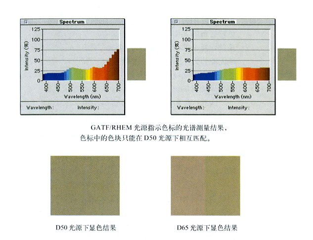 色度計不能探測出同色異譜。它們只能夠告訴你在特定的照明條件下兩個顏色樣品是否匹配,但是它們沒法說清這種匹配是不是在這個特定照明和觀察條件下的同色異譜,也不能告訴你兩個樣品是否真的是具有相同的光譜特性,是否能夠在所有照明體下都是相互匹配的。幸運(yùn)的是,對于大多數(shù)色彩管理用途來說,在一種照明條件下計算顏色匹配已經(jīng)足夠了。