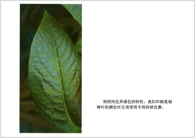如果沒有同色異譜現(xiàn)象,就只能完全按照原始顏色刺激的光譜組成絲毫不差地復(fù)制形成顏色的光譜了(附帶說一句,這正是聲音復(fù)制不得不做的事情——將原聲刺激一個波一個波長地復(fù)制)。如果覺得現(xiàn)在的油墨花費(fèi)太高了,那就請你想像一下用數(shù)千種顏色的油墨取代現(xiàn)在僅僅用四色油墨的結(jié)果!