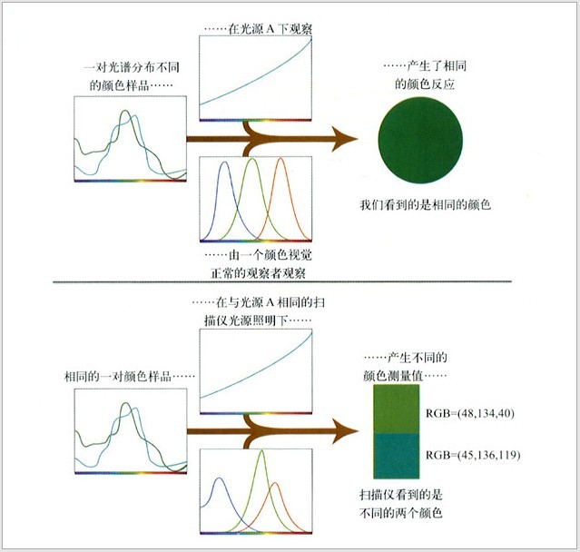 (圖1-17:掃描儀同色異譜是如何產(chǎn)生的)
