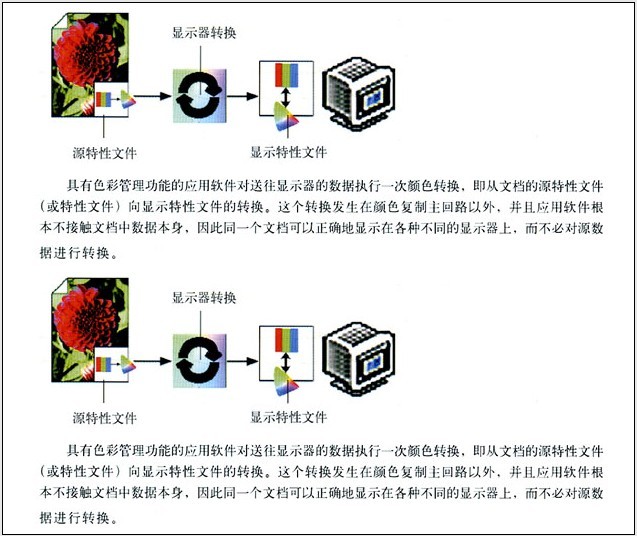 然而,從流程的觀點(diǎn)看,顯示的轉(zhuǎn)換并不在色彩管理回路之中。具有色彩管理功能的應(yīng)用軟件是通過(guò)顯示卡來(lái)進(jìn)行顯示顏色數(shù)據(jù)轉(zhuǎn)換的,而軟件本身根本沒(méi)有接觸到這些顏色數(shù)據(jù)。