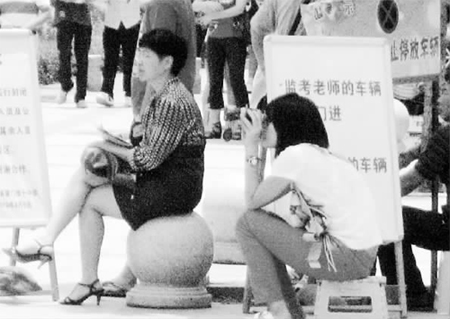 上午11點(diǎn)半,女孩放下手中的望遠(yuǎn)鏡,收起小板凳,“我看到她們出來了,這就去迎接。”說罷,女孩留下一個(gè)急匆匆的背影,消失在人群中。