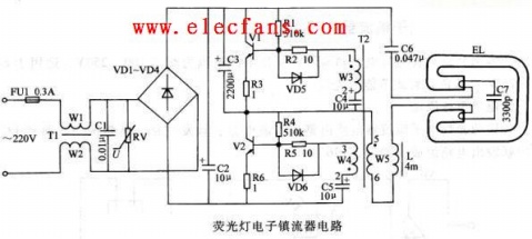 熒光燈電子鎮(zhèn)流器電路圖