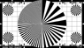HDTV Zone Plate Test Chart (600 c/ph, asymmetric)The TE125 zone plate test chart is particularly suited for the visual determination of the resolution of a high definition camera. It shows asymmetrically arranged one zone plate ranging from 0 to 600 c/ph and two zone plate sectors with their centers located in the left corners. The gore-shaped gaps are gray. | |