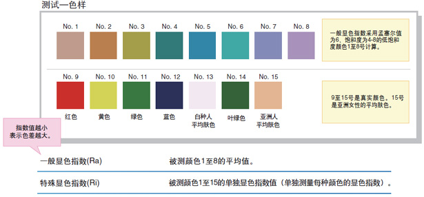 光源顯示的色調(diào)越接近自然原色,其顯色性就越好(或越高)。顯色指數(shù)是對燈或其他光源顯色性的量化結(jié)果,旨在提供客觀標準。顯色指數(shù)表示被測光源和標準光源※ 的接近程度。大值為100。顯色差異越大,值越小,說明被測光源顯示的顏色和自然原色的差距越大。