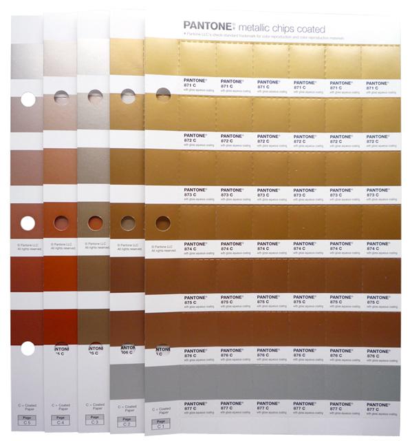 彩通金屬色色票[PANTONE METALLIC CHIPS]手冊為每種 PANTONE 金屬色提供六種規(guī)格色票。您可擁有全套 301種按色譜順序排列、印制在光面銅版紙上的艷麗金屬色。