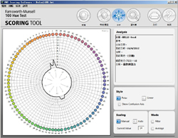 該測試提供易于管理、而又有效的測試方法測試個體色覺。用于政府和工業(yè)界應(yīng)用40多年,測試系統(tǒng)由4盒共85個橫跨可見光譜的可移動式色棋(色相漸變)組成。通過按色相排列色棋順序測試色覺異常或其傾向性。包括基于 Windows 的電腦評分軟體。4盒色棋裝于鋁合金手提箱內(nèi)。 必須在日光條件下進(jìn)行這個測試,例如 GretagMacbeth SpectraLight 和 Judge 查看室提供的照明。Farnsworth-Munsell 100 色相測試用于將具有正常色覺的人分成優(yōu)異、一般和差的辨色能力等級,可測試色覺缺陷人員的色弱區(qū)域。