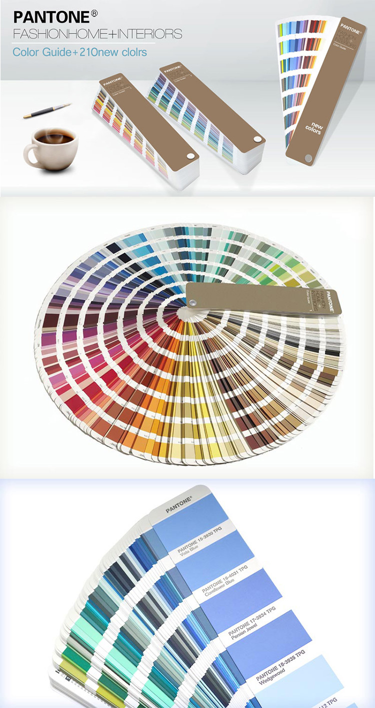 這些色彩也以《彩通服裝、家居+室內(nèi)裝潢色彩手冊》打孔扇形的形式提供,也提供棉布版(色號后綴為TCX)。