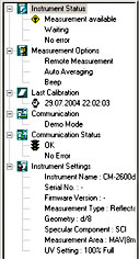 采用SpectraMagic NX,所有儀器信息(狀態(tài)、測量選項、上次校準(zhǔn)、通信狀態(tài)和儀器設(shè)置)均清晰可見。